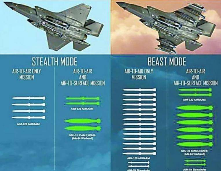 该新战术中提到的“野兽模式”,说白了就是隐身战机彻底舍弃隐身性能优势,挂满弹药去执行规定作战任务。