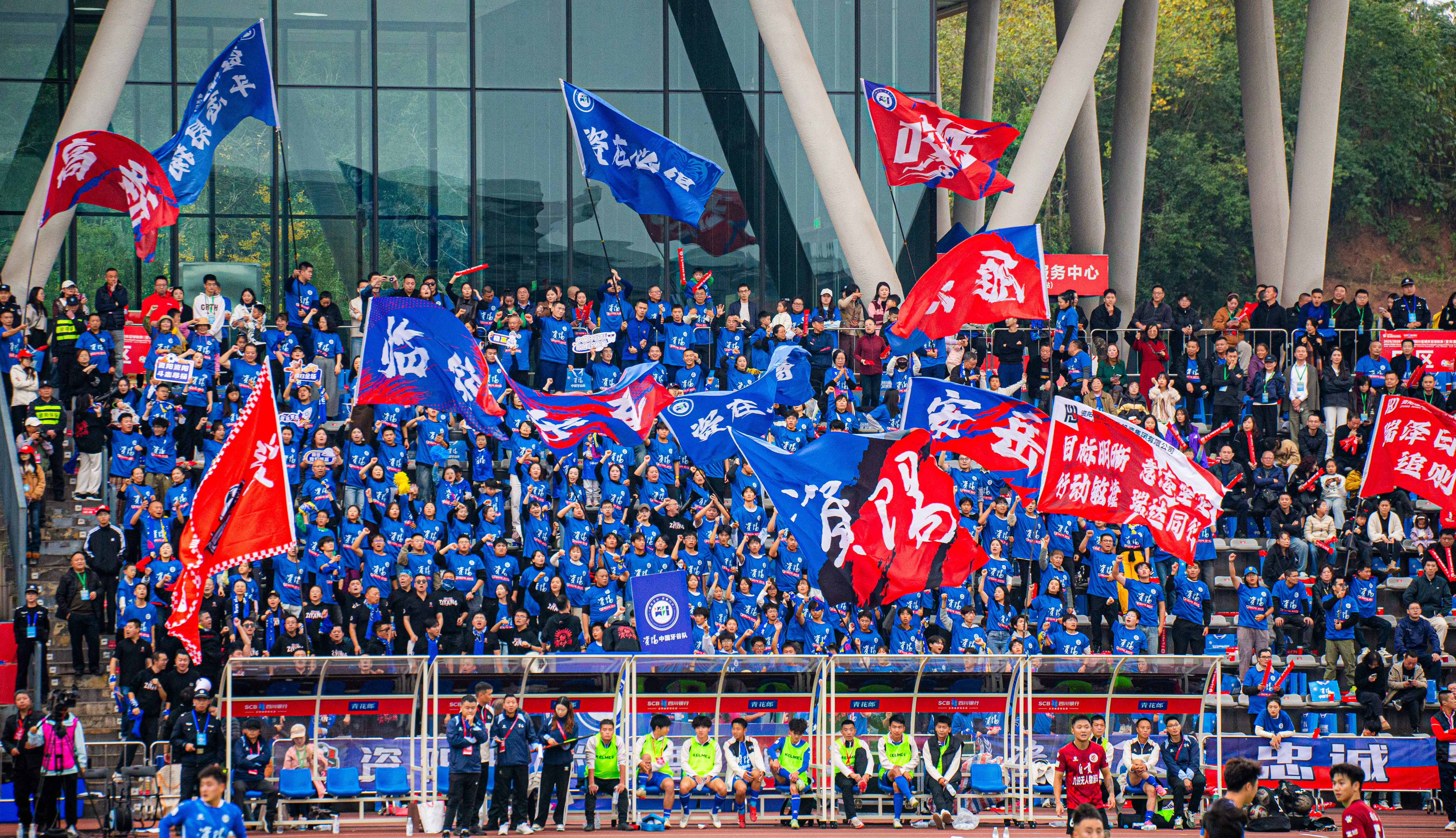 这场足球盛宴,也让整座城市拧成了一股绳。赛场内,有上至75岁,下到5岁的球迷坐镇看台助威,台下则是“南柠王妃”身着汉服为球队呐喊;赛场外,从足协会长龙腾暂缓自家生意、四个月无休筹备赛事,到解说员高青蹲守训练场摸清每一位球员特点,再到十余个部门组成执委会织就保障网络,资阳人用行动诠释了“全城皆兵”的凝聚力。终场哨响后,球员们展开“一路并肩,感恩有你”的横幅致谢球迷,为21岁门将甘羽现场庆生的温情场景,更让足球超越了竞技本身,成为联结人心的纽带。
