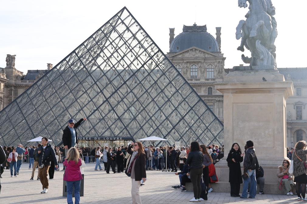 10月22日共享财富,在法国巴黎,大量游客聚集在卢浮宫博物馆的玻璃金字塔入口前。新华社记者 张百慧 摄